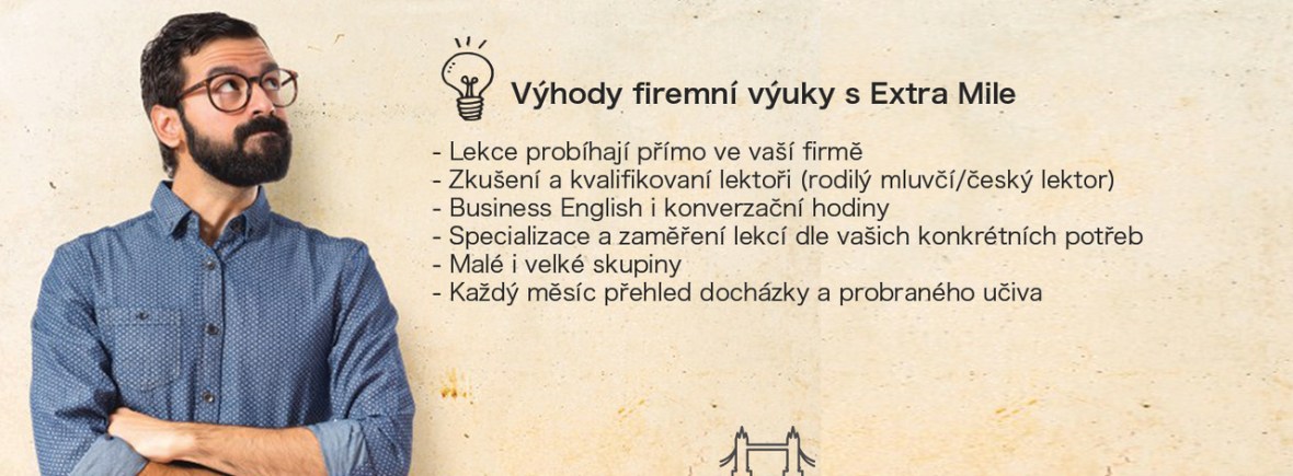 Znalost angličtiny je při podnikání v současné době nezbytností, zároveň se jedná o jeden z nejvíce oblíbených benefitů pro zaměstnance. Spojte tak příjemné s užitečným a domluvte si lekce s Extra Mile