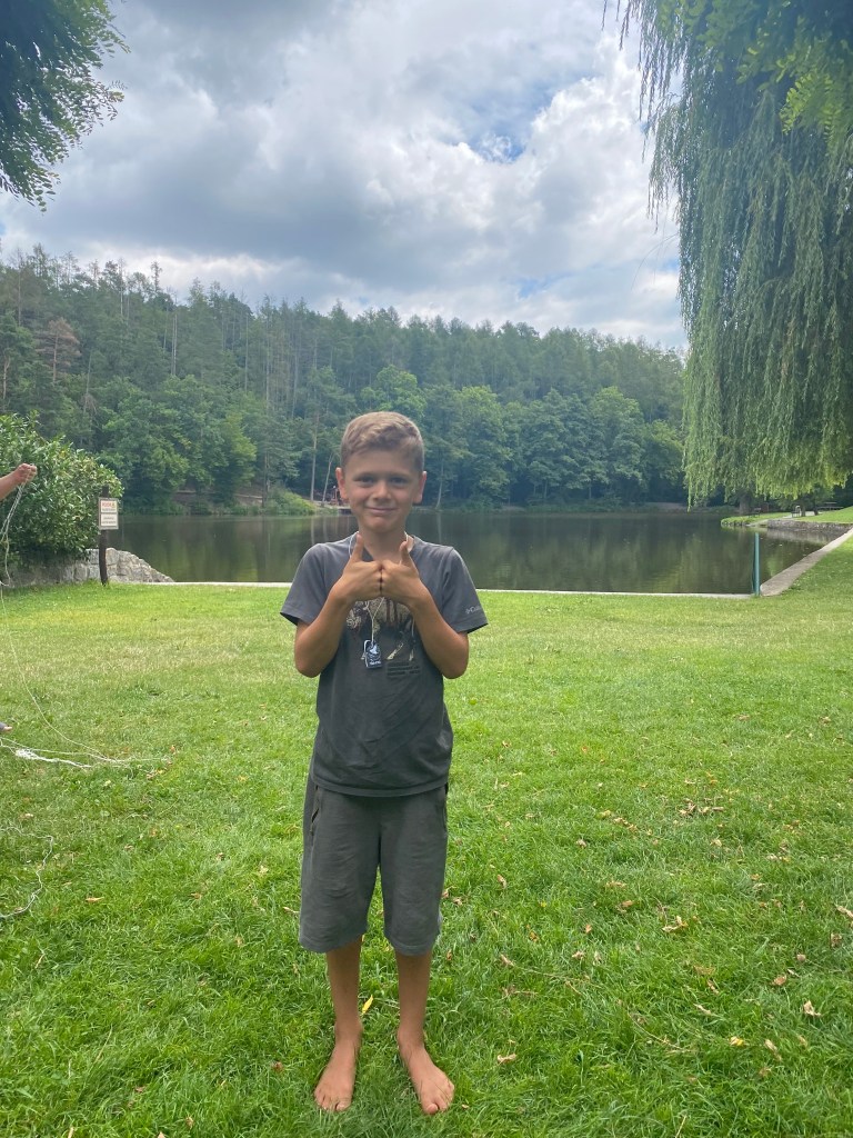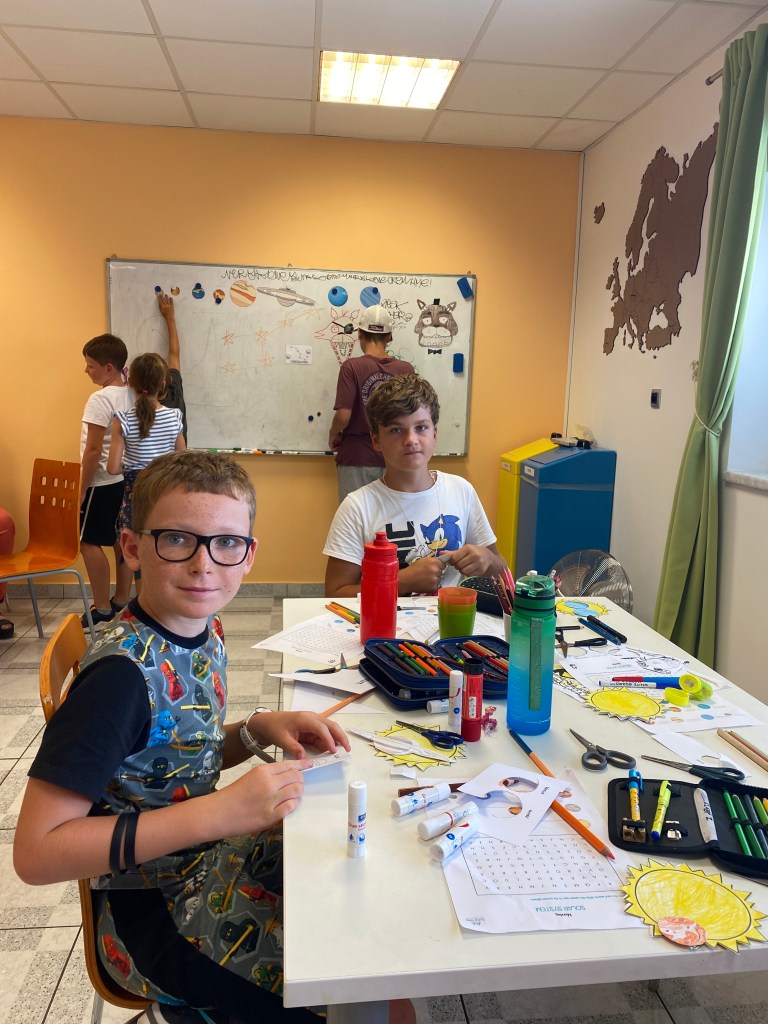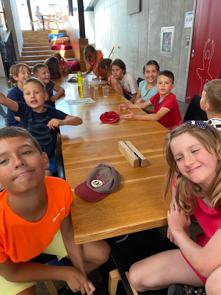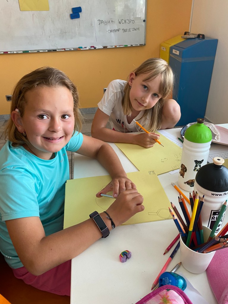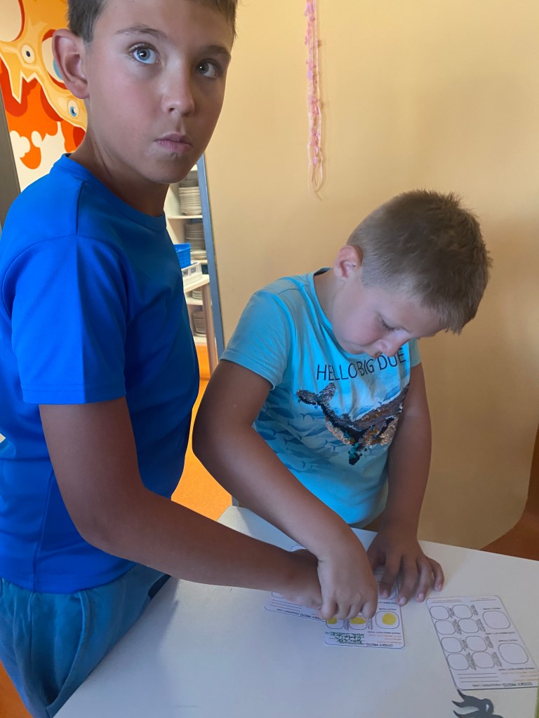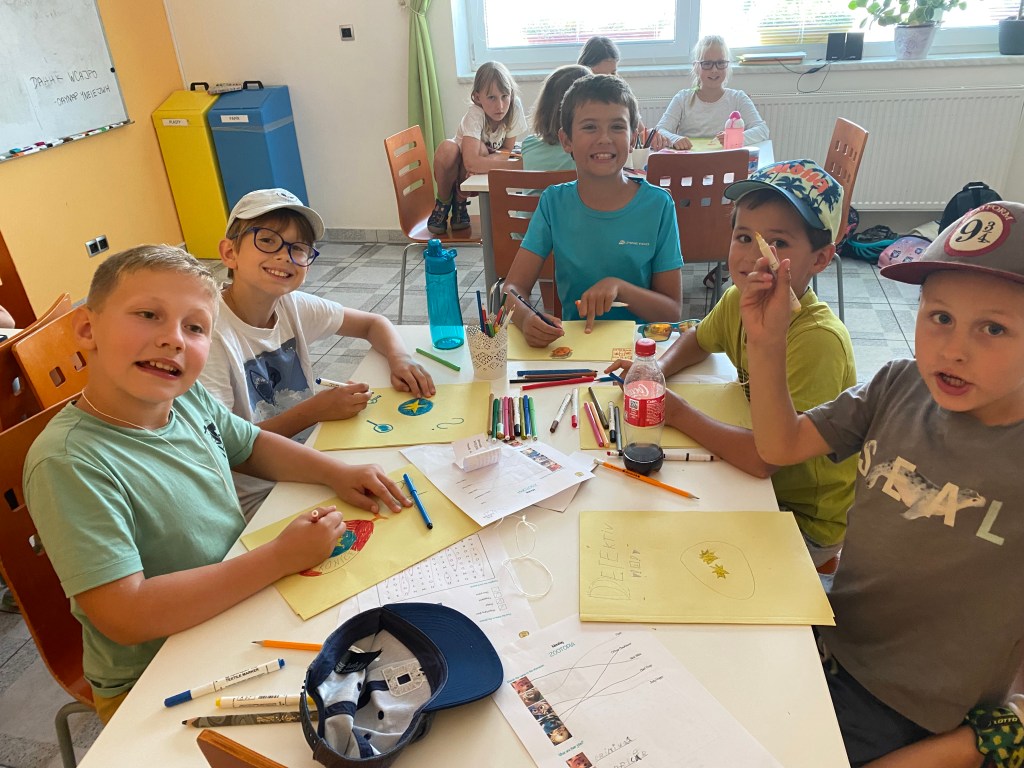 V tomto týdnu jsme trávili spoustu času venku a malí detektivové procvičovali své badatelské dovednosti, fyzickou zdatnost, ale i důvtip při týmových hrách a individuálních disciplínách. Nakreslit portrét podezřelého, sejmout otisky prstů, či vyrobit si převlek, který ošálí každého pachatele? Žádný problém! Uprostřed týdne se naši detektivové úspěšně dostali z únikové místnosti, a během celého tábora luštili tajné kódy a rébusy, které je přivedli na stopu tajného pachatele, který hned na začátku týdne ukradl všechny sladkosti! Naši malí detektivové pachatele, který si říkal Secret Criminal, však vypátrali a úspěch oslavili v bazénu 🙂
